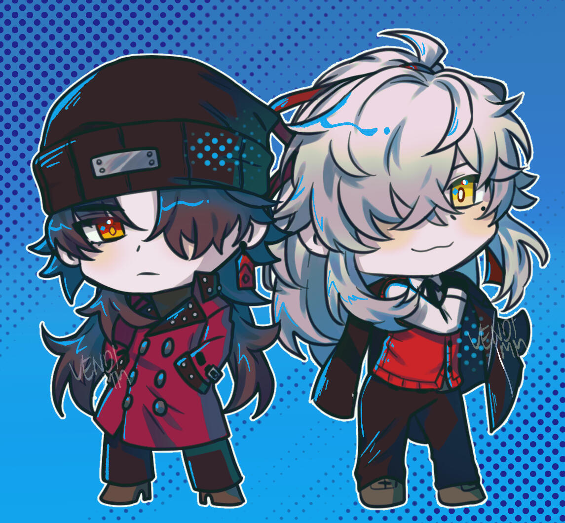 (i can also draw in the genshin impact character icon style! no extra needed. but the characters will be front facing like this.)